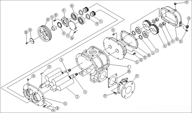 羅茨風(fēng)機(jī)工作原理圖